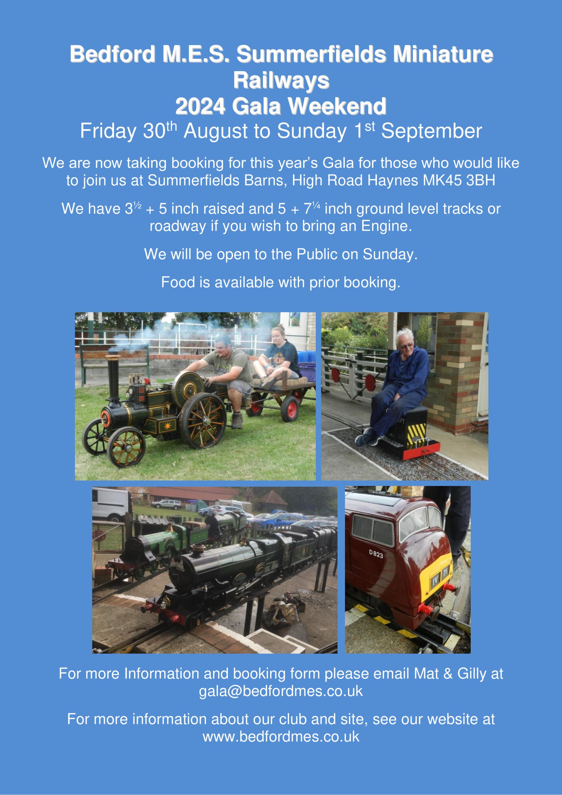 Bedford Model Engineering Society are once again holding their Annual Gala at the Summerfields Miniature Railways at Haynes in Bedfordshire. This year’s event will be held over the weekend of Friday 30th August to Sunday 1st September 2024. As always we extend a cordial invitation to fellow enthusiasts from other clubs to join us for a weekend of miniature railway enjoyment.